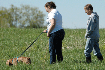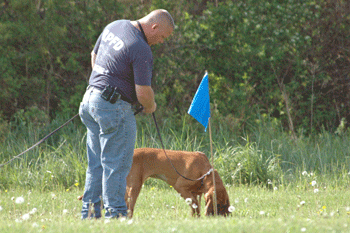 Demonstrating lead handling on a club member |