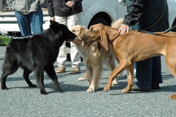 When the mower shows up at the field, all you can do is let the dogs socialize