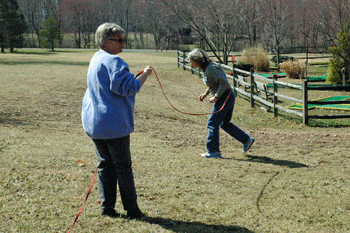 After lunch the participants got to take their dogs out into the field and put what they learned into practice. |