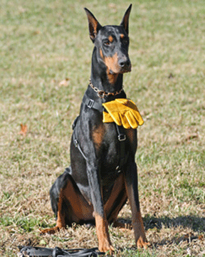 I’ve been involved with Dobermans since the mid-1970s, and bred my first litter under the “Blue Chip” kennel name in 2000. Blue Chip Dobermans have many breed and working titles to their credit, but Bogey is the first to get the TD! I’m very proud to be his breeder, owner and handler.