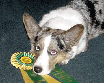 The judges were ready, I was ready, Mace was ready and there was the start flag. Mace walked around a bit at the flag but soon took off straight ahead. At this point in Mace’s tracking life, I just follow him where ever he takes me. He knows if he is right, he gets a big reward. If he is wrong, he gets nothing. Mace wants the reward. Certainly, I was going to follow him now; there was no other choice. First turn seemed to come quickly. I was very pleased to get past the first turn. Now I would be happy as hell to get to the first article. On a very bare stretch of the track I spotted a very brightly colored article. I wasn’t sure what it was, too far away to tell. Mace goes right up to it and sits. It was a handmade mitten with every color yarn you could think of. Nice choice for an article! Mace continued on. A turn or two…I was not counting. The track went down a hill and up the other side. Mace was heading toward some sort of horse panels. The track goes through these things? Again I see a very bright orange and grey thing lying in amongst the panels. Mace sits. It is a hunting sock. On we go. I was sure we should go to the left…seemed logical but Mace was going right. I was going with him. If he was wrong at this point, I would still have been very happy. He was working very hard and had come a long way. Mace goes straight toward a couple of large piles of stone. What was this? The dog was climbing over the piles. At one point he walked up a ramp that was near the stones. I was waiting to hear the whistle. No whistle. I thought I would just let Mace work it out. He circled around a bit. I backed up a couple of yards and off he went. Thank goodness, I really wanted to get away from those stones. At this point, I thought the end of the track was near…it had to be…the dog was running out of handler. I kept looking for the glove as we came down a hill through the trees. What I thought was the glove turned out to be a chunk of bark. Mace did check this out but continued on.