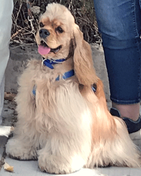 I am a Cocker Spaniel in show coat (and in fact had competed in breed and obedience two days earlier) so we use a jacket to snag vegetation and burrs before they become one with me. Since it was at a test, Mom had to take the coat to near the start flag and then get all my four feet in – and I wanted to GO. Finally I was dressed, ran up to the flag, and we were off. Mom has learned that when I know where the track is – which is most of the time - she’s wisest to just hold on and let me show the way – and she’d better not fall, because that interrupts my momentum.