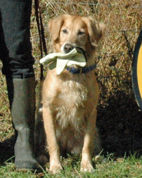 Here’s an excerpt from the last time I reported on Spring at Lenape’s TD: Spring is 7 years old and definitely knows how to track. However, she is very difficult to track – she thinks it’s a timed event, her tracking and crittering body language look very similar, and she has the highest prey drive of any Golden I’ve owned. Because she tracks so fast with a minimal number of body parts touching the ground at any one time, I call her style, “Mr. Toad’s Wild Ride!” … This year she finally passed certification in record time – she zoomed through the track lightning fast. (At Lenape’s TD test) there was dew/frost covering the ground when I started Spring. As soon as I started Spring, I knew that the frost was holding in too much critter scent and she was not going to pass. Her brain was chanting track-critter- track-critter- track-critter-critter- track-critter-critter-track-critter-critter-critter-critter-critter… and we got the whistle at the second turn.